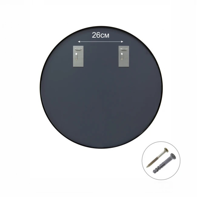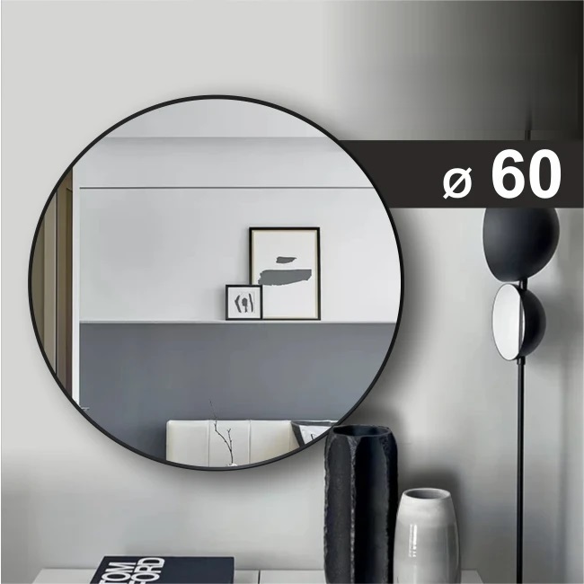 Minimalist hanging round mirror with black frame. The mirror is moisture-resistant and suitable for the bathroom. Most often hung in bathrooms with narrow sinks that require a small width.