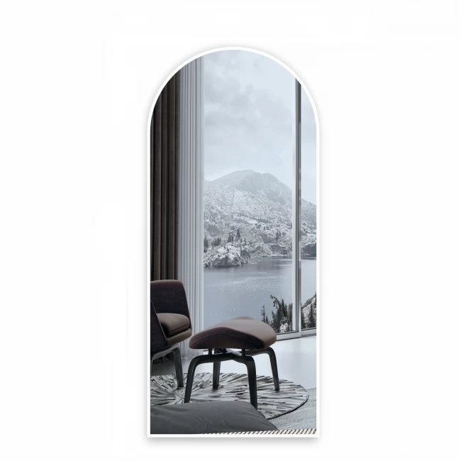Arkos formos veidrodis su baltu rėmu 70×160 cm.