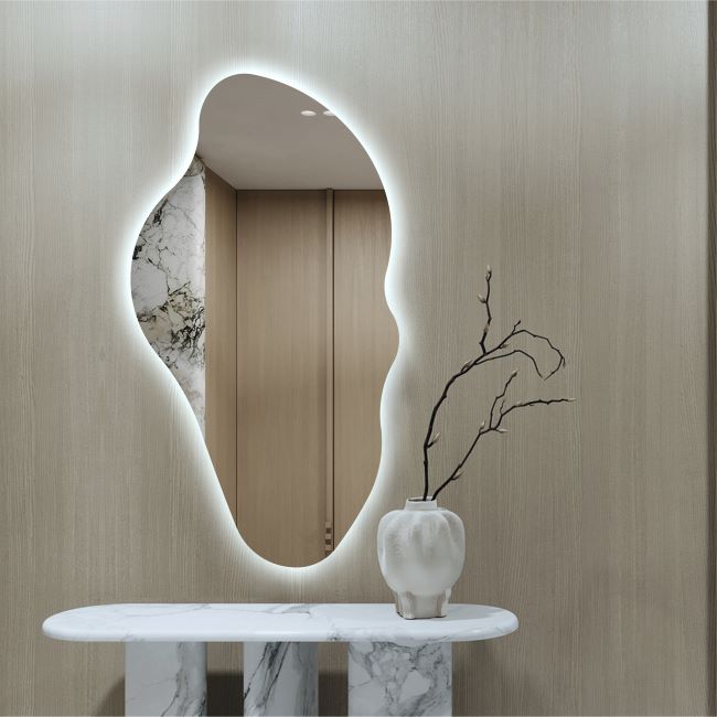 Netaisyklingos formos veidrodis su apšvietimu 60×110 cm – modernus ir stilingas pasirinkimas