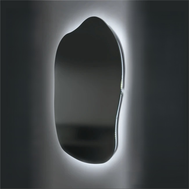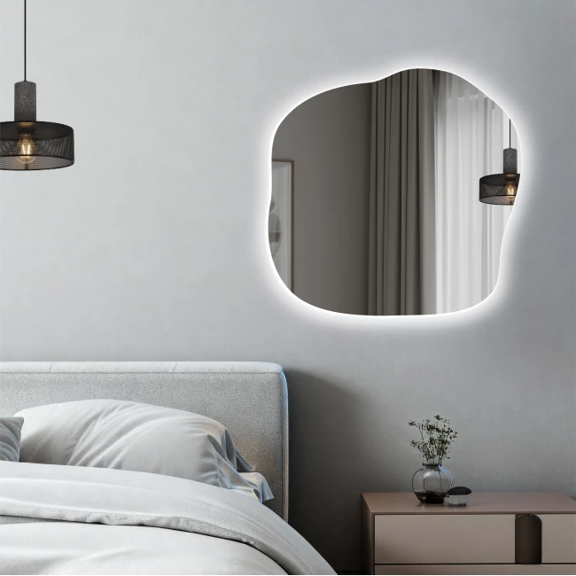 Netaisyklingos formos veidrodis su apšvietimu 70×70 cm – modernus ir stilingas pasirinkimas