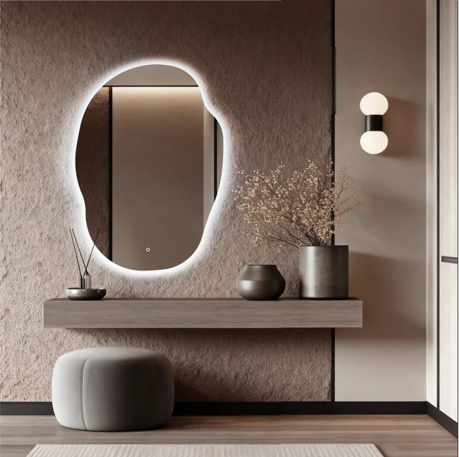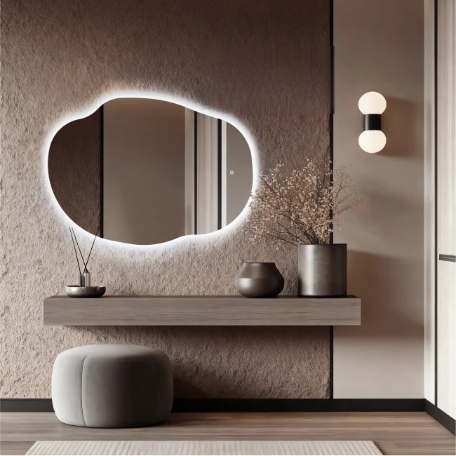 Netaisyklingos formos veidrodis su apšvietimu 97×70 cm – modernus ir stilingas pasirinkimas