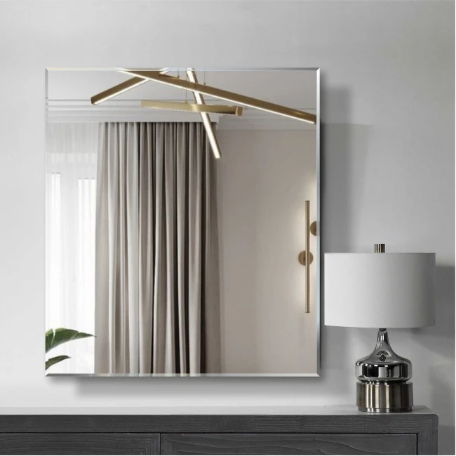 Veidrodis be rėmo, kurio visos kraštinės su 15 mm nuimta nuožulna (facetu). Veidrodis tinka vonios kambariui. Naudoti tik patalpose.