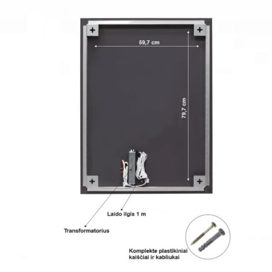 Veidrodžio išmatavimai: 90x70x2,5 cm