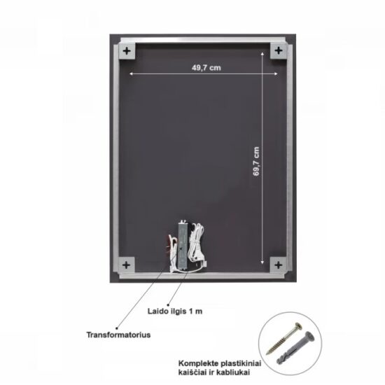 Veidrodžio išmatavimai: 80x60x2,5 cm