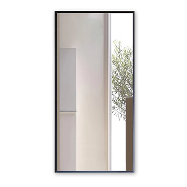 Veidrodis su juodu aliuminio rėmeliu. Veidrodžio rėmelis stačiakampio formos. Rėmo plotis 7 mm. Veidrodis yra atsparus drėgmei tinka vonios kambariui. Šis veidrodis būtinai papuoš, bet kurį kambarį Jūsų namuose.