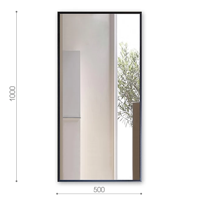 Veidrodis su juodu aliuminio rėmu 100×50 cm