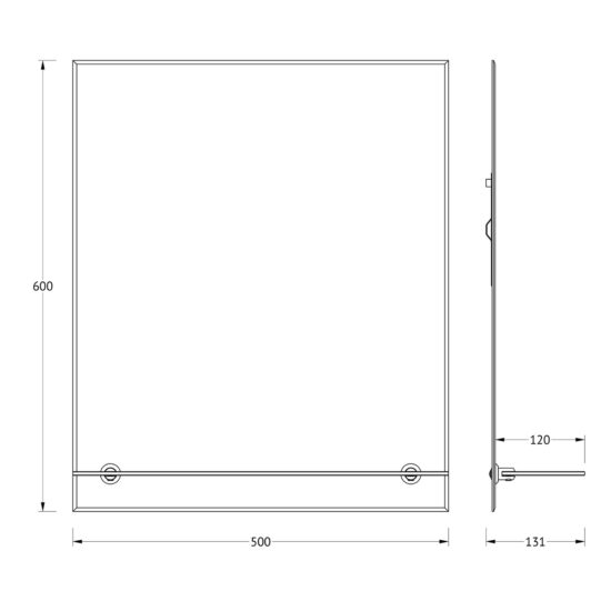 Gražus sieninis veidrodis su lentynėle ir 5 mm facetu. Veidrodis yra atsparus drėgmei, skirtas vonios kambariui. Veidrodis komplektuojamas su pakabinimo elementais ir matinio stiklo lentynėle.