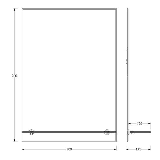 Gražus sieninis veidrodis su lentynėle ir 5 mm facetu. Veidrodis yra atsparus drėgmei, skirtas vonios kambariui. Veidrodis komplektuojamas su pakabinimo elementais ir matinio stiklo lentynėle.
